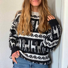 Wonderfully soft and warm jumper featuring a knitted pattern with a herd of white llamas. These jumpers are made from a mix of Alpaca wool and soft acrylic.