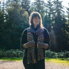 These practical tube gloves are fingerless to allow easy use of your phone. They have been knitted into a pretty rainbow design and have a fleece lining to keep you extra warm when it counts!
