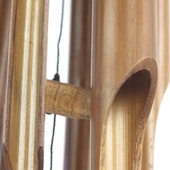 These lovely medium windchimes are handmade in Indonesia from fast growing, sustainable bamboo. As the wind blows, the bevelled sections knock together and against the central wooden striker creating a gentle, pleasing tone. The perfect sounding item for relaxing on a sunny day in the garden. Approximate length of longest chime: 30cm