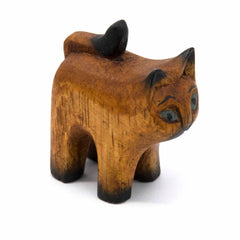 This curious little kitty has been hand carved from jempinis wood and given touches of paint for added character and personality.
