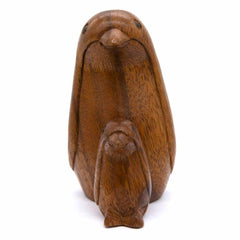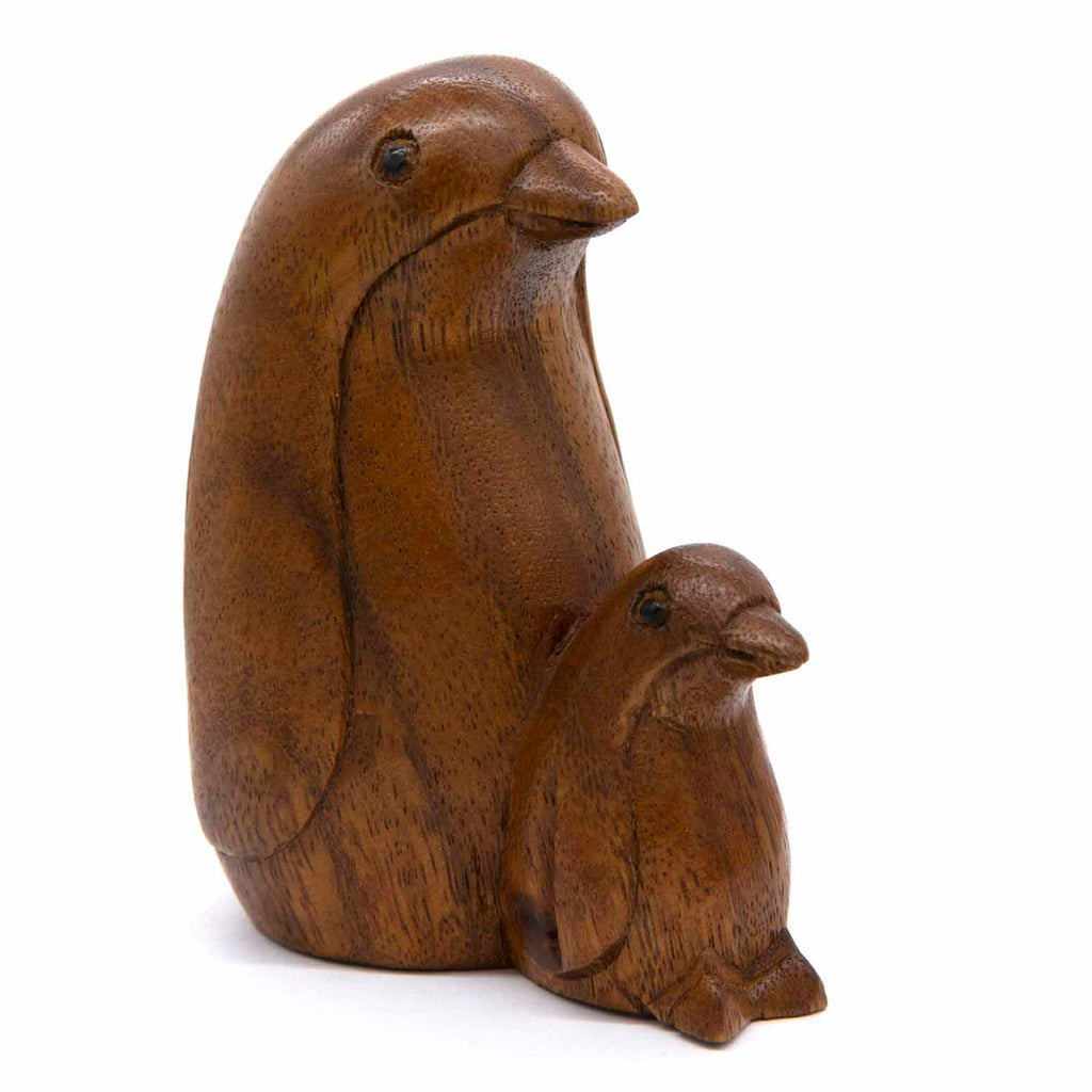 An adorable wood carving of a mother and baby penguin, snuggled up together. These carvings would make a lovely shelf decoration or a great gift for Mothers Day.