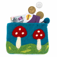 This purse has a colourful felt design of fungi and is a great size for carrying your cards and cash around. It is fully lined and has a secure zip fastening with an extra felt bobble. Because you can never have too much felt!