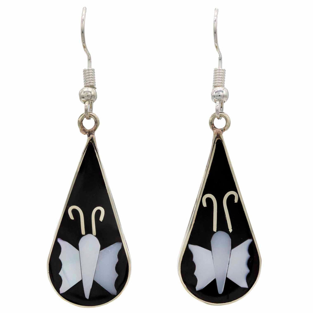 These pretty teardrop earrings feature a design of the beautiful Pieris butterfly, created from beautiful abalone shell. Our Mexican earrings are produced by hand in the picturesque town of Taxco using Alpaca metal alloy and silver plated hooks.