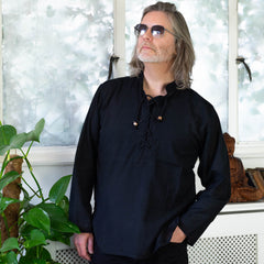 Shiver me timbers, what an amazing pirate shirt! Complete with an open banded collar and a lace up neckline, this top will certainly give you swashbuckling style!