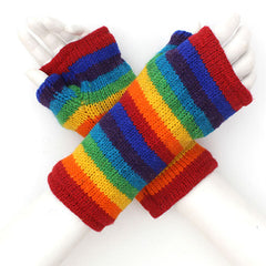 Ravishingly rainbow, these soft 'tube style'glovesare brilliantly warm and these wrist warmers are a particular favourite of those working in the chilly Siesta warehouse. Made from chunky wool with a comfy fleece lining. Therefingerless design means thatthe gloves allow for full finger movement whilst keeping your hands and wrists warm.Colours may very slightly - we recommend hand washingseparately in cold water and line dry to maintain the shape of the wool and the colours.