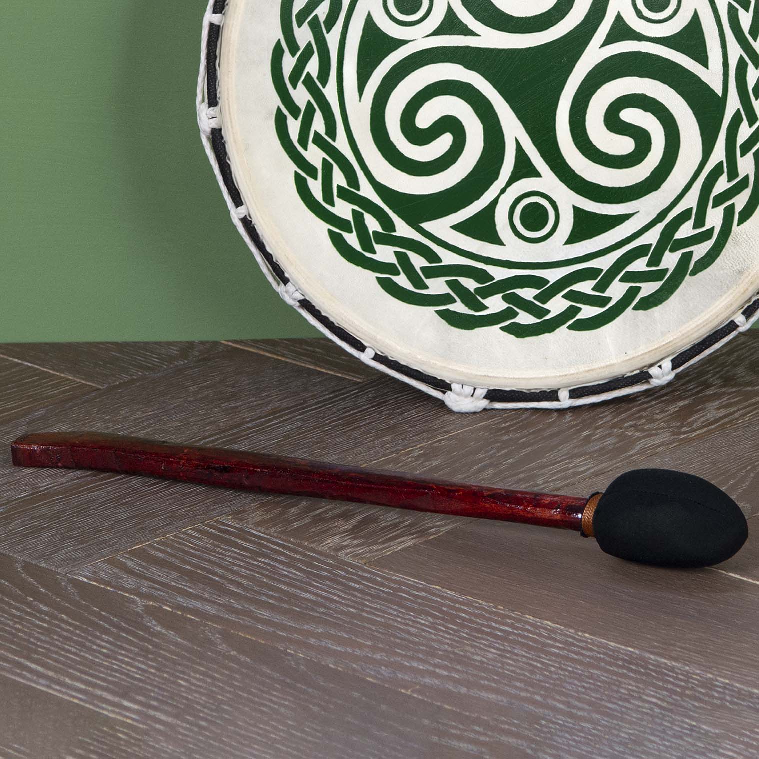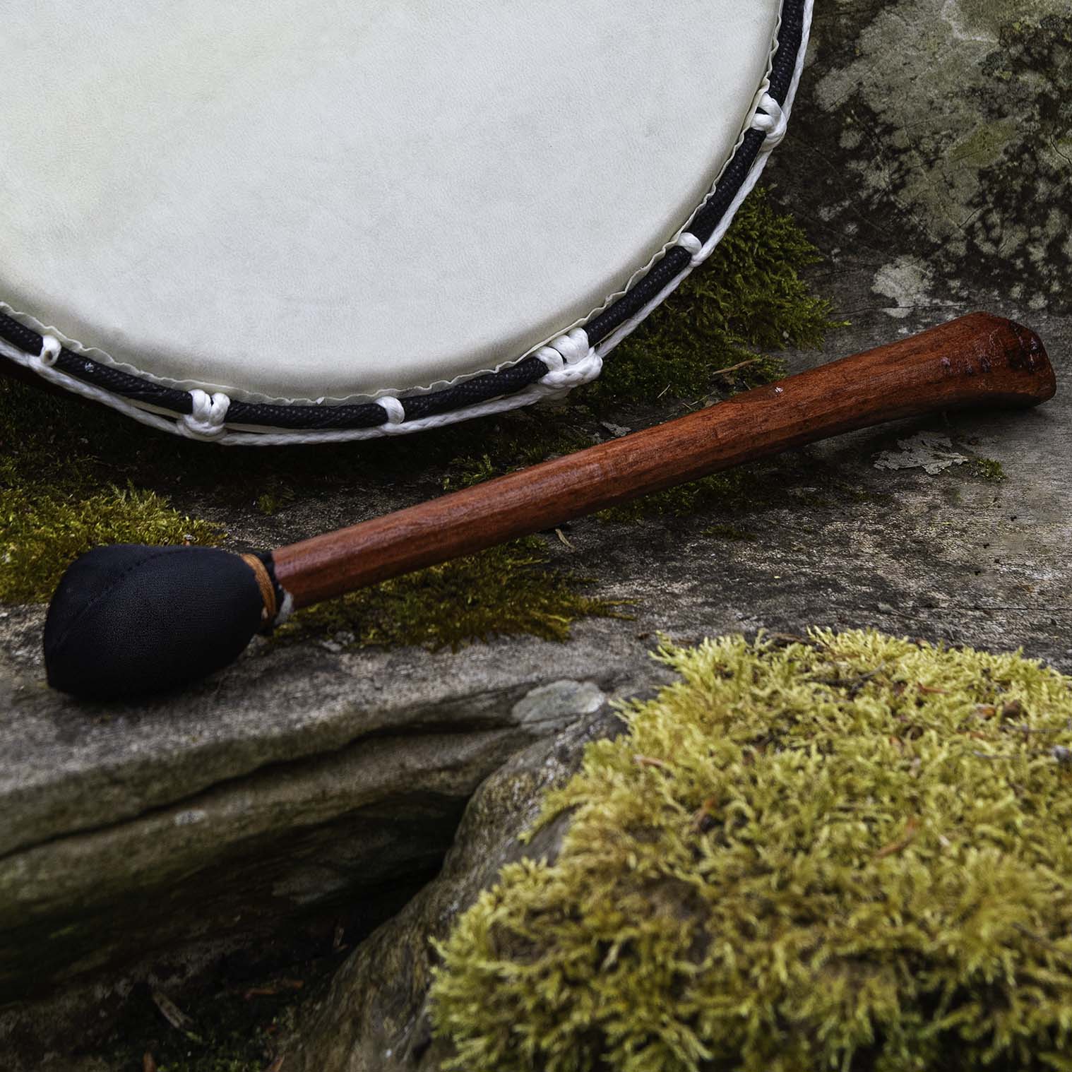 Simple wooden beater with sponge padding to use with traditional shamanic drums. Shamanic drums are widely used by shamans in rituals. The drum is said to enable the shaman to enter a desired state of mind according to the beats per second played. Drumming on these is not restricted to regular rigid tempo playing but can speed up and down according to the musician's will.