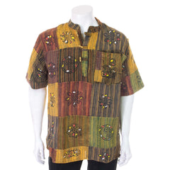 These overdyed short sleeved kurtas have been hand decorated with flecks of bright colour to create a dynamic look. Each kurta has wooden toggle buttons and comes in mixed colours. Mixed colours