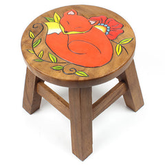 Small acacia wood stool, handmade, carved and painted in Thailand.