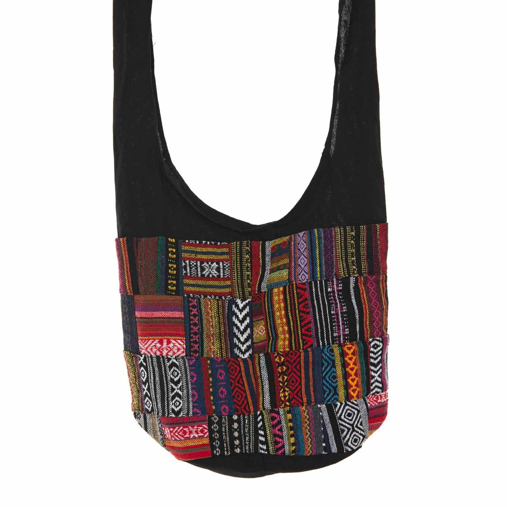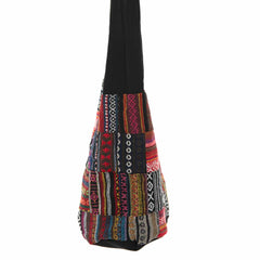 This shoulder bag is a great size which makes it ideal for taking shopping or carrying to class. It has a handy inside zipped pocket, perfect for your phone or purse. The design is made from a patchwork of the popular Thai weave material and comes fully lined with a secure zip fastening.