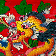 Handcrafted from solid wood, this Tibetan style chest features multiple drawers and cupboards that are perfect for organising jewellery, incense or other cherished items. Each surface is hand painted with vibrant floral and geometric motifs, transforming a practical storage piece into a work of art.