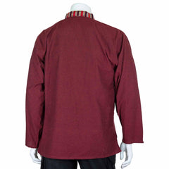 These stylish shirts feature a traditional Tibetan trim detailing made from woven fabric. They also have three coconut buttons and a single breast pocket.