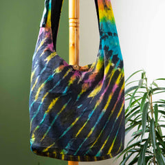 There's lots of room in this tie dye shoulder bag, making it ideal for taking shopping or to class. They have a handy inside pocket for keeping your keys or walleteasily accessible, and have a secure zip with pretty coconut buttonfastening. And with an extra convenient velcro pouch on the strap you'll always have your phone close at hand.